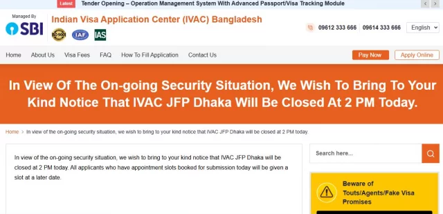 A notice in this regard has been published on the IVAC Bangladesh website. The notice states that due to the emerging security situation, no further activities will be conducted after 2 pm on Wednesday. The notice also mentions that a new time will be fixed later for those who were supposed to submit their applications at that time.
