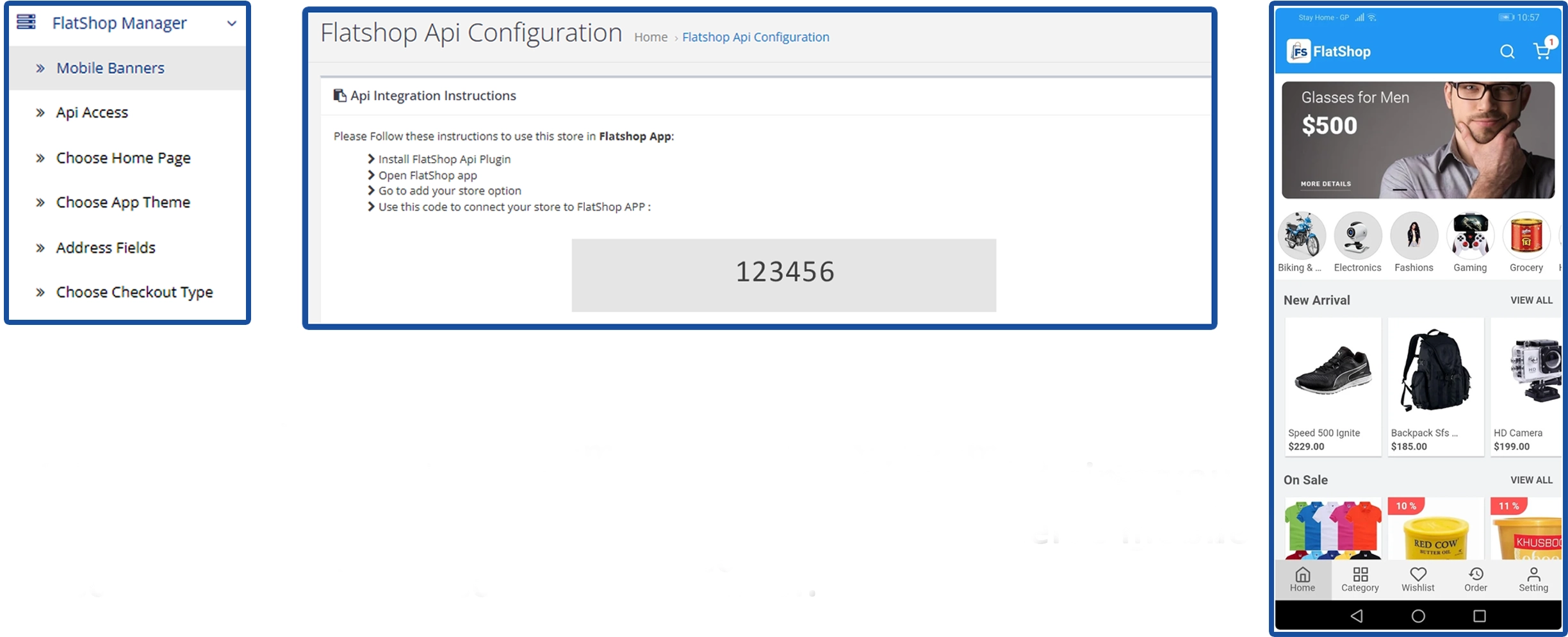 Enter the API Access code from your store admin panel under Flatshop > API Access, then click Connect.