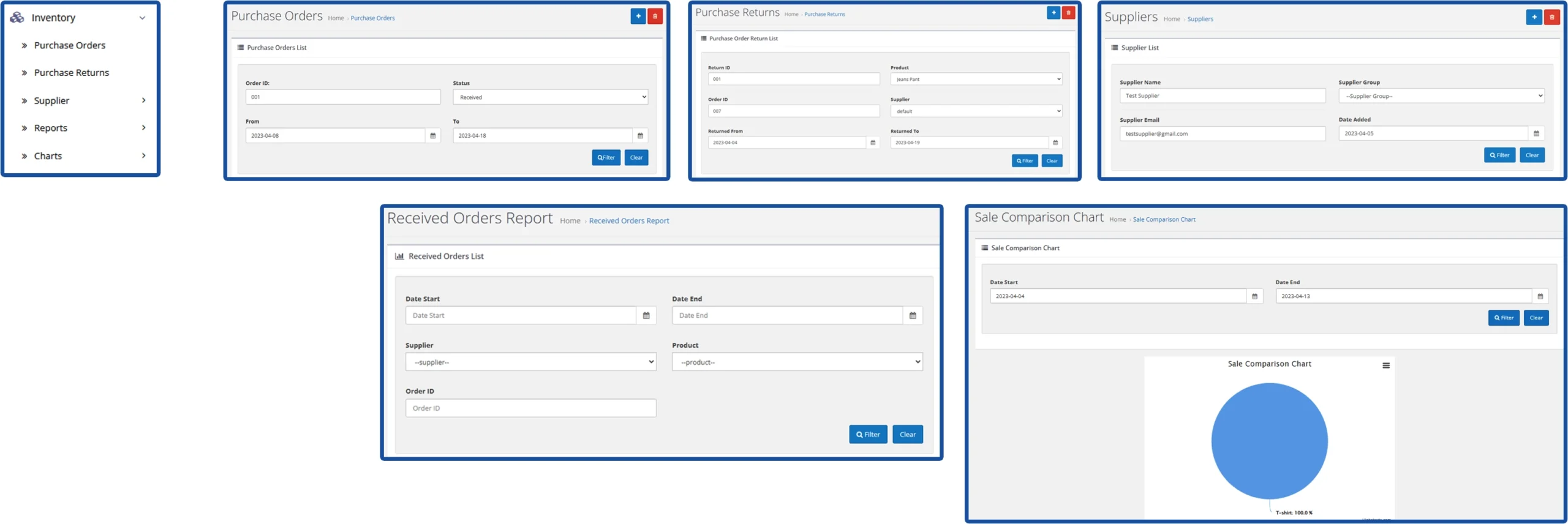 Storola offers complete inventory control. Admins can generate reports on purchase orders, returns, and stock, manage suppliers, and track received, pending, and stock in-out reports. Cities and zones can also be assigned to streamline inventory and courier management.