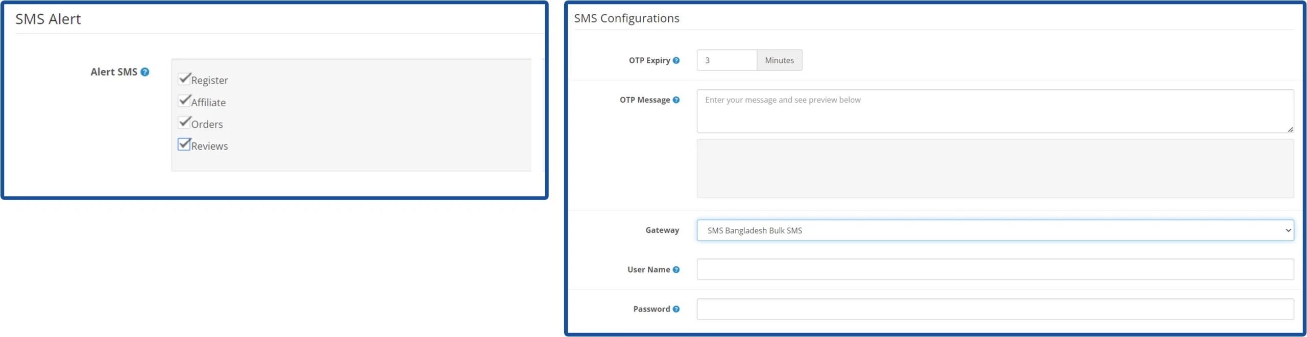 Admins can send SMS alerts for orders, OTPs, or promotions. Simply purchase bulk SMS from providers like Twilio, MSMS, or Adnsms, configure your parameters, and alerts are ready to use.