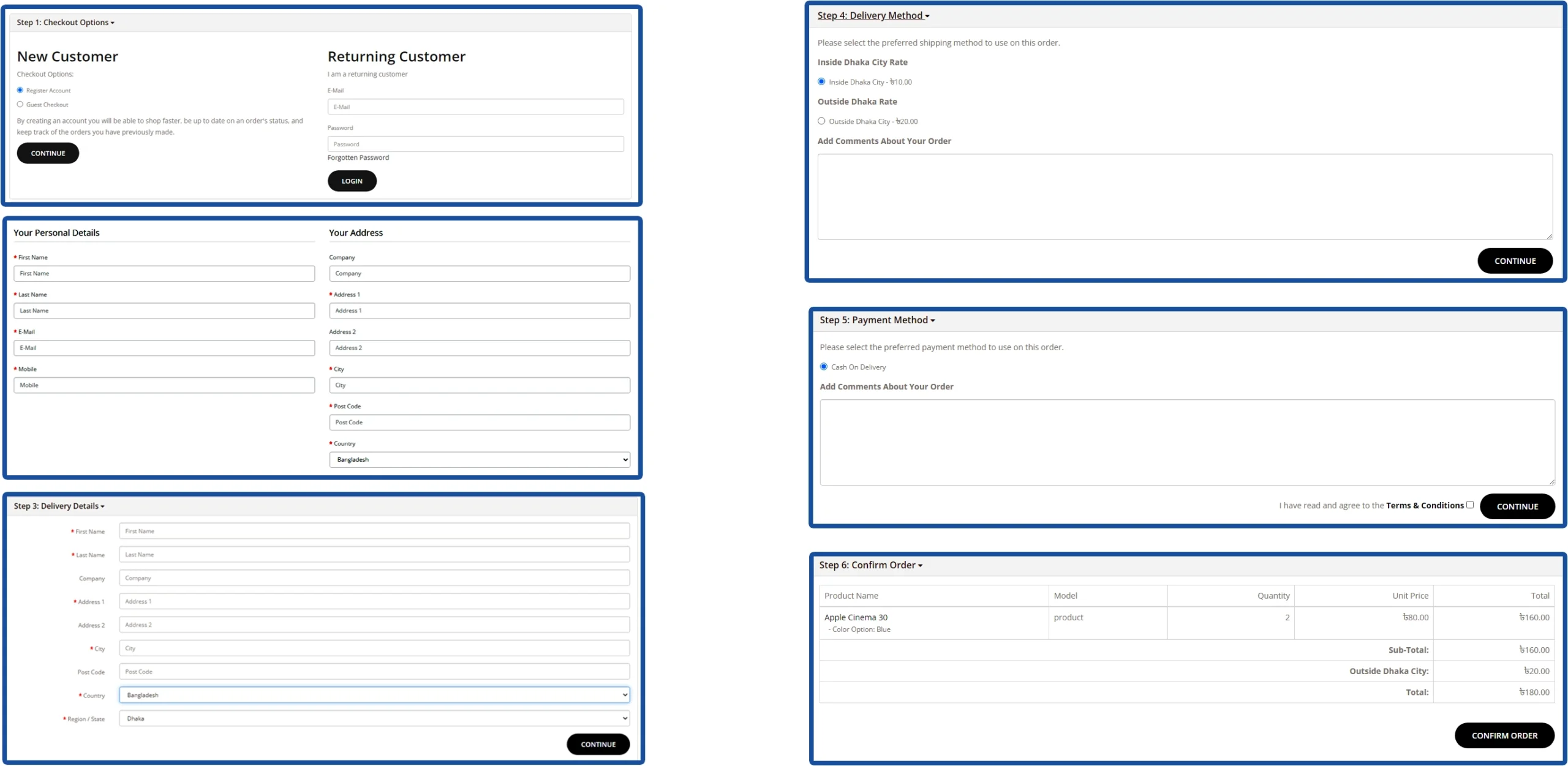 Customers can easily add order notes, change product quantities, select shipping and billing options, and update their cart items directly on the same page. The checkout also supports vouchers, coupons, and recurring product options, ensuring a seamless and rewarding shopping experience. From the admin panel, store owners can customize checkout fields, manage payment and shipping methods, and even design the checkout layout to match their brand identity.
